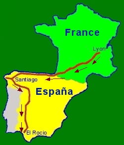 Pèlerinages deLyon à Compostelle, entre Saint Jacques de Compostelle et El Rocio, au dela de Séville, entre Alicante et Santiago de Compostelle, sur le Chemin des Navigateurs au Québec (Canada)